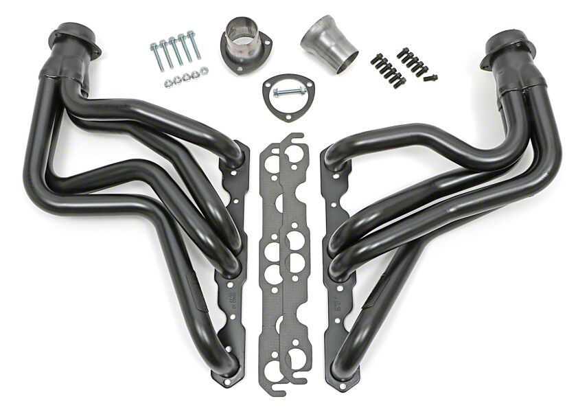 These LONG-TUBE headers fit factory-equipped 5.0L / 5.7L (305/350 cid) V8 Chevy Camaros and Pontiac Firebirds. The smooth 1-5/8 in tube design provides ample exhaust flow to let your third-gen F-Body's engine breathe easy, and produce maximum horsepower and torque. These headers are uncoated, and ship from the factory with a temporary black paint that will burn off when submitted to normal operating temperatures. For protection against the element and lower underhood temperatures, these headers are also available with a silver or black ceramic-metallic finish.