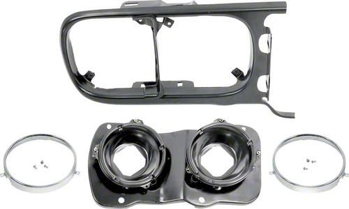 Reproduction of the original headlamp mounting components designed for use with 1969 Firebird and Trans Am models. Replace the damaged headlamp mounting components with this quality reproduction. Each set includes the headlamp retaining ring, headlamp inner bezel which mounts behind the bezel cushion, and the headlamp buckets with the backing plate.