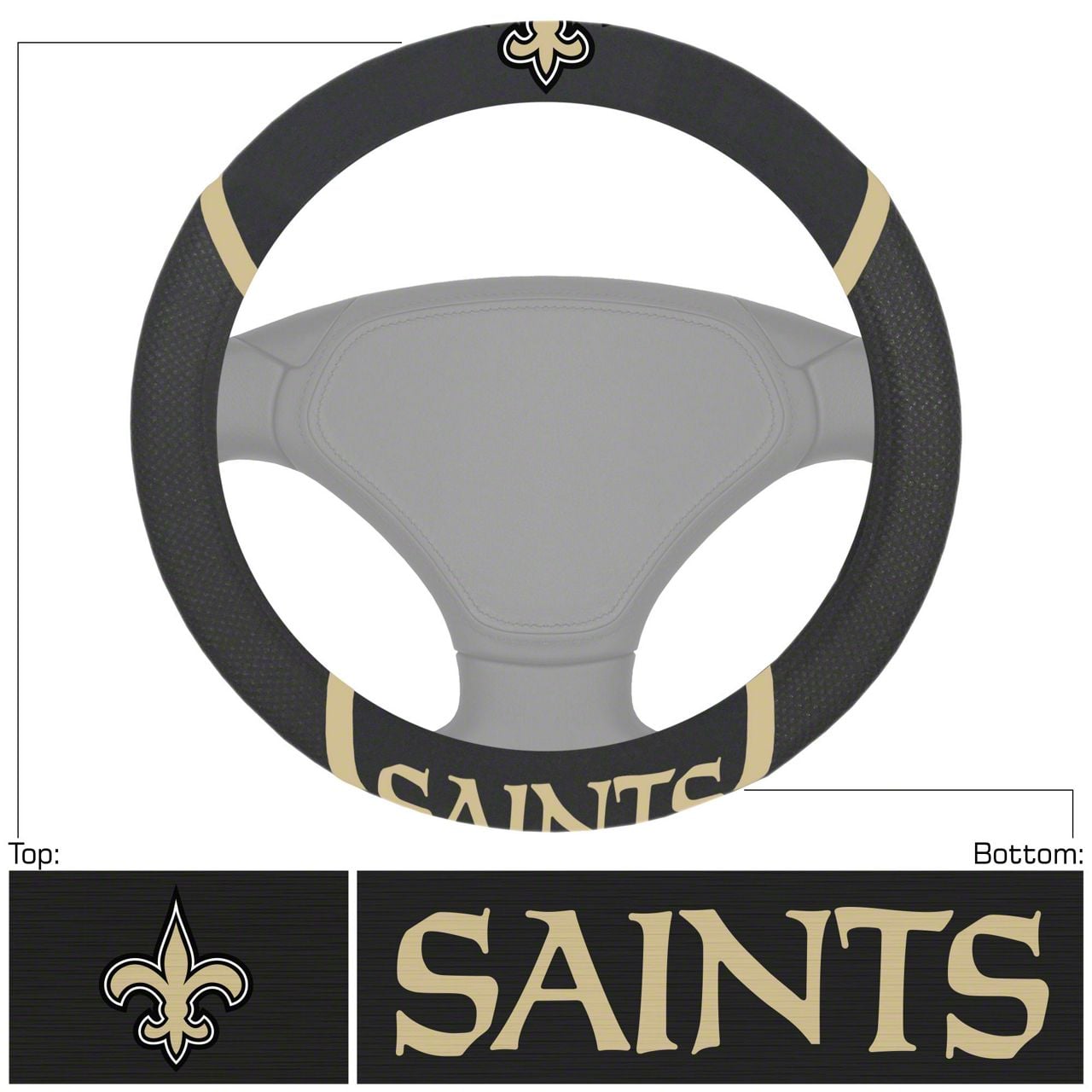 Steering Wheel Cover with New Orleans Saints Logo; Black (Universal; Some Adaptation May Be Required)