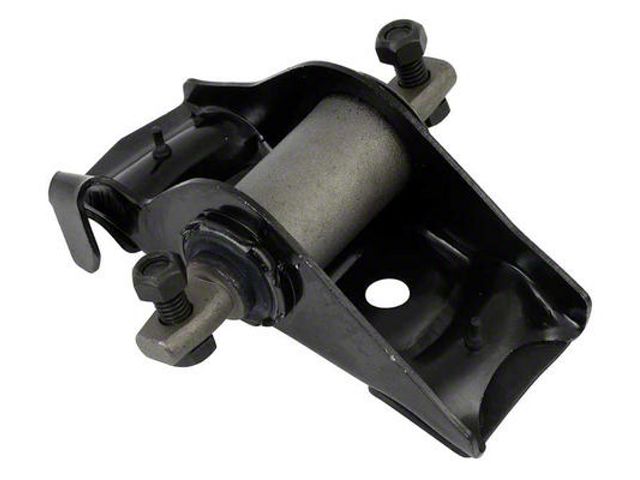 Heavy duty spring saddle with rubber bushings, nuts & bolts & pad for 1965-1973 Mustang. This coil spring saddle can rotate on the shaft. This allows the front suspension to align freely and as necessary. These coil spring seats bolt to the upper control arm and support the bottom of the coil spring. Made with a heavy strength metal to factory original specifications and are sold individually. Two perch seat and bushings are required per vehicle. Seats have bolts with 3/8"-16 threads.