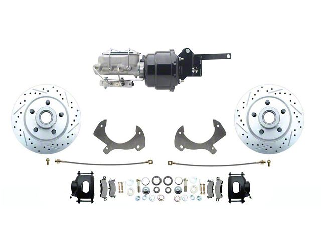Front Disc Brake Conversion Kit with Drilled and Slotted Rotors and Proline Booster; Black Calipers (57-64 Ranchero)Find parts that fit my vehicle