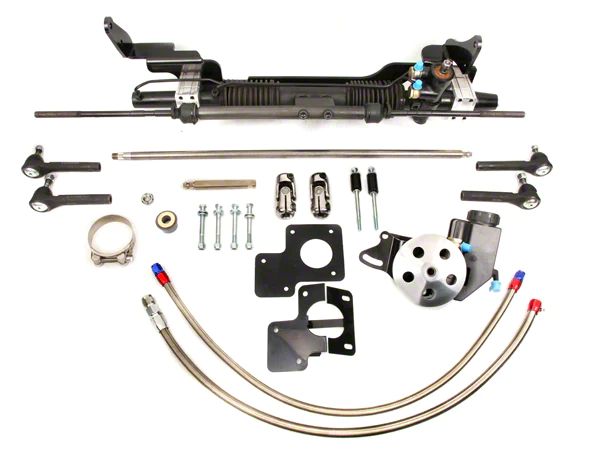 This kit is vary similar to our Fairlane kits for the same model year, but with slight differences. This kit is a center take-off rear steer rack & pinion. The rack comes mounted on a one piece bracket. This kit is specific to Rancheros only, not other model Fords of the same years. The kit fits cars with small block motors only; installs have been done using vehicles with the 289 and 302 motors. Installs have also been done using Headman Elite Block Headers. Other headers may work, but might require modifications.