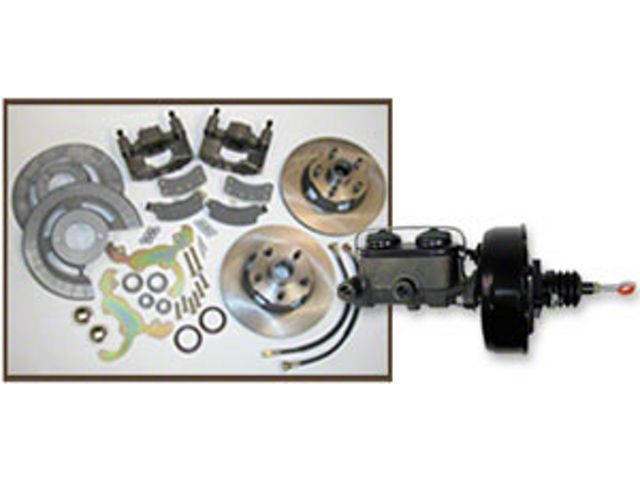 Dearborn classics now offers a new power disc brake conversion for converting your original manual drum brake system to power front discs. Kit includes a new power booster, and dual bowl master cylinder, large high quality rotors, loaded calipers, brake hoses, bearings, and seals. Completely assembled for easy and quick installation. Front or rear available. These kits will not fit factory 13 or 14 inch wheels. 15 inch wheel minimum required. Also included in this money saving package is a new power brake booster. This unit gives you incredible braking capacity never offered originally on your classic Ford. We have found this booster to be the best braking power available for your classic Ford and far superior to single reservoir styles being sold by Other suppliers. One year warranty o