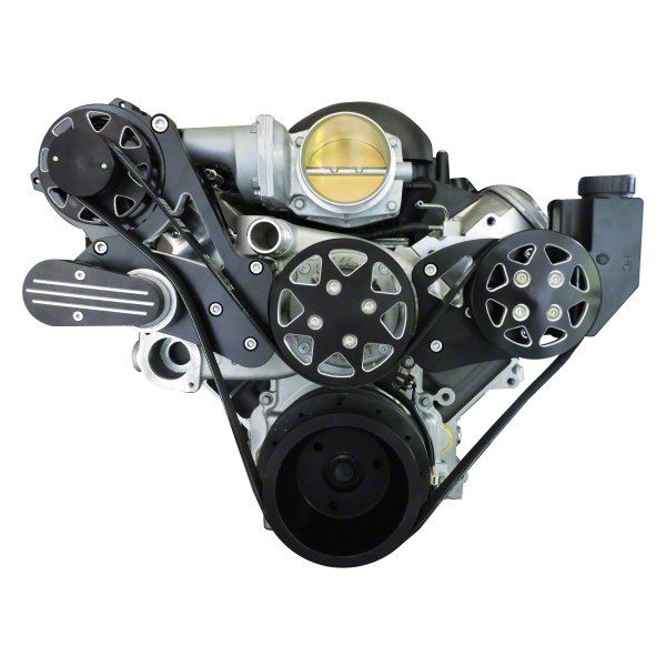 Front Drive System, w/ On Board PS Reservoir, LS1, 2, 3 & 6 - With Tuff Stuff Water Pump, Black Silverline, NO AC & PS (53-96 Corvette C1, C2, C3 & C4)Find parts that fit my vehicle