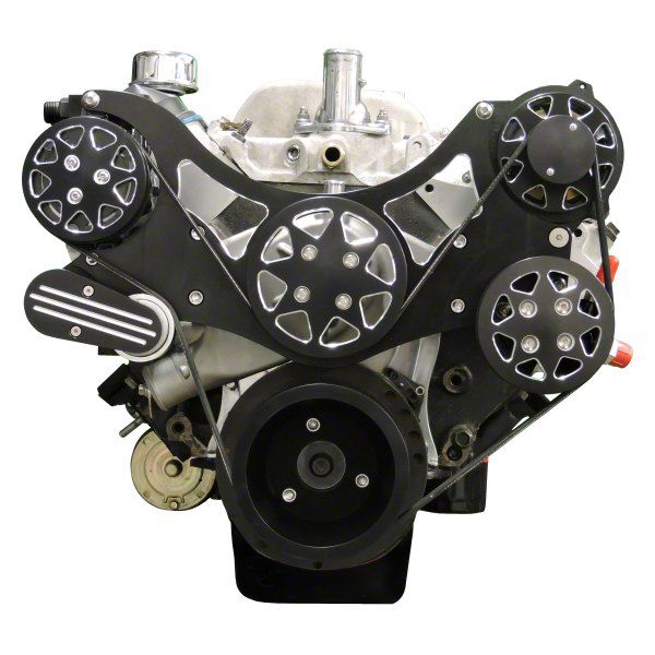 Front Drive System, w/ On Board PS Reservoir, Big Block Chevy, Black Silverline, w/ AC and Power Steering (59-87 El Camino; 71-77 Sprint; 78-87 Caballero)