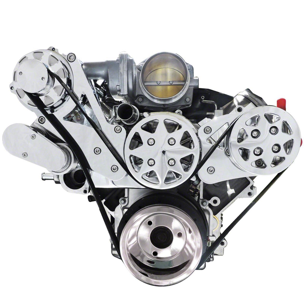 Front Drive System, w/ On Board PS Reservoir, LS1, 2, 3 & 6 - With Edelbrock Water Pump, Polished, w/ NO AC & PS (53-96 Corvette C1, C2, C3 & C4)Find parts that fit my vehicle