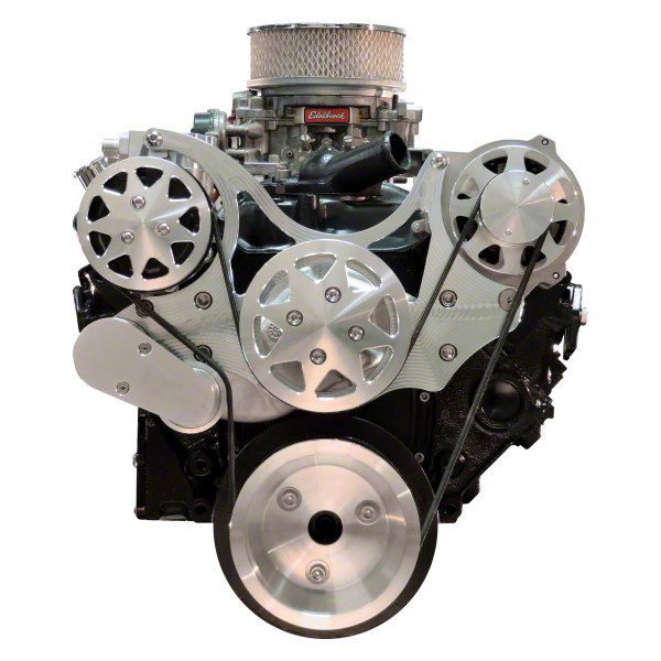 All American Billet Serpentine Kits are a great way to clean up any engine compartment. Our kits come standard with Tuff Stuff Performance Accessories and are made in the U.S.A. Brackets are made from 6061-T6 aluminum, and come in Machined Finish, Polished, ""Silverline"" & ""Silverline Supreme"" Series.