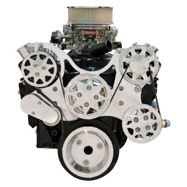 Seamless Integration. The Front Drive System (Polished with AC and Power Steering) offers a complete solution for your vehicle's accessory drive needs. Designed with universal applications in mind, this system provides seamless integration of air conditioning and power steering functionality while delivering exceptional durability and performance.