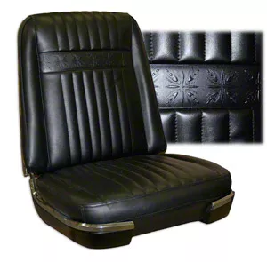 Original style bucket seat upholstery for your 1967 500XL models is now available. Made to original specifications, these seats feature the original horizontal leaf embossed inserts in factory colors. Choose from factory Black, Blue, Parchment and Red. Made in the USA! Available in Fall 2001.
