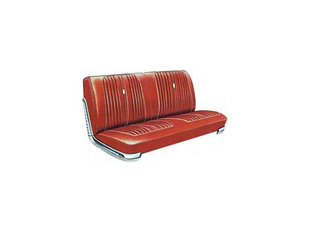 Brand new exact reproduction seat upholstery for your 1964 Galaxie 500. An excellent reproduction of the original Ford seat cover. These feature the correct original style vertical color keyed seat strapping as well as rectangular embossement. Seat cover emblem is not available, original will have to be reused.