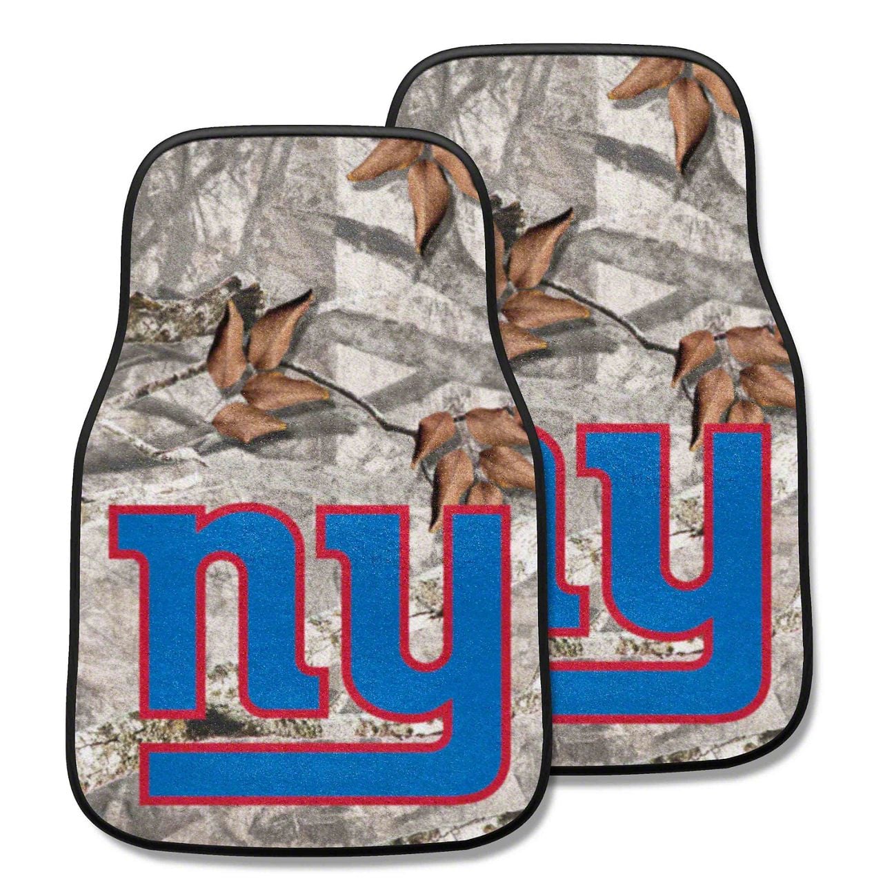 Carpet Front Floor Mats with New York Giants Logo; Camo (Universal; Some Adaptation May Be Required)