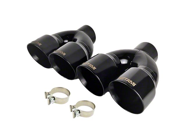 Quad Staggered Slant Cut Exhaust Tips; 4-Inch; Gloss Black