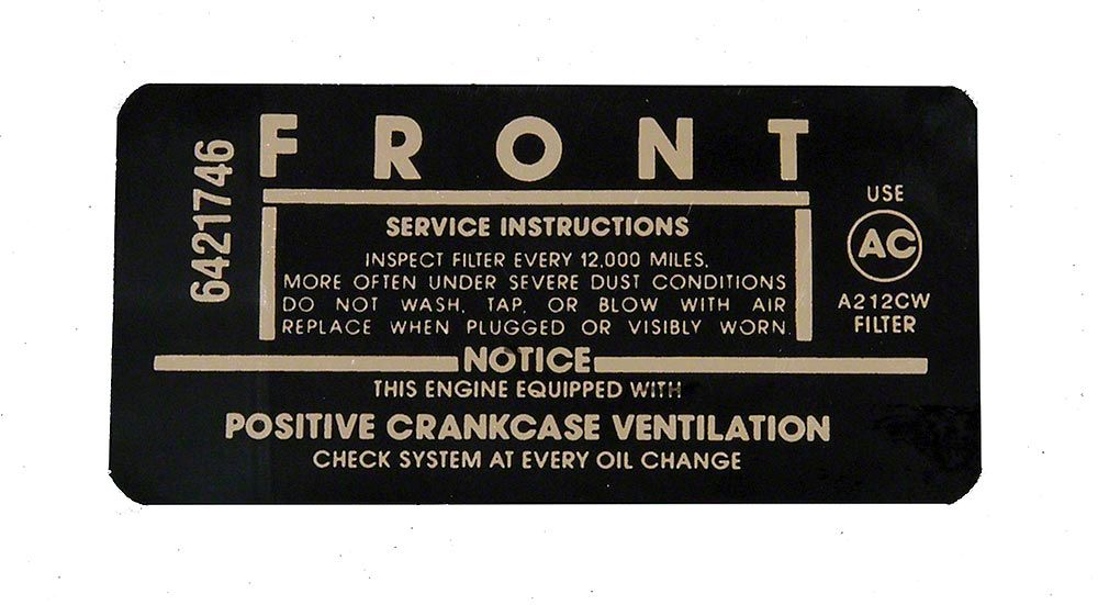 Full Size Chevy Air Cleaner Service Instructions Decal, 283ci/195hp (64-65 Biscayne; 64-65 Impala)