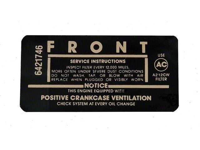 The decals on your Chevy are bound to get peoples' attention when you are at a car show. Because of this, don't you want to be sure that your air cleaner decal look shiny and new to give off that sophisticated, professional image? Over time, these decals can become scratched and worn down from wear and tear, and will inevitably need to be replaced. After all, you want to keep up that positive image for your Chevy, right? Ecklers Late Great Chevy is happy to offer this new reproduction decal for your Chevy that matches GM factory specifications. This decal will add the much-needed look back to your Chevy. Trust Ecklers Late Great Chevy for all of your restoration and replacement needs for your Chevy!
