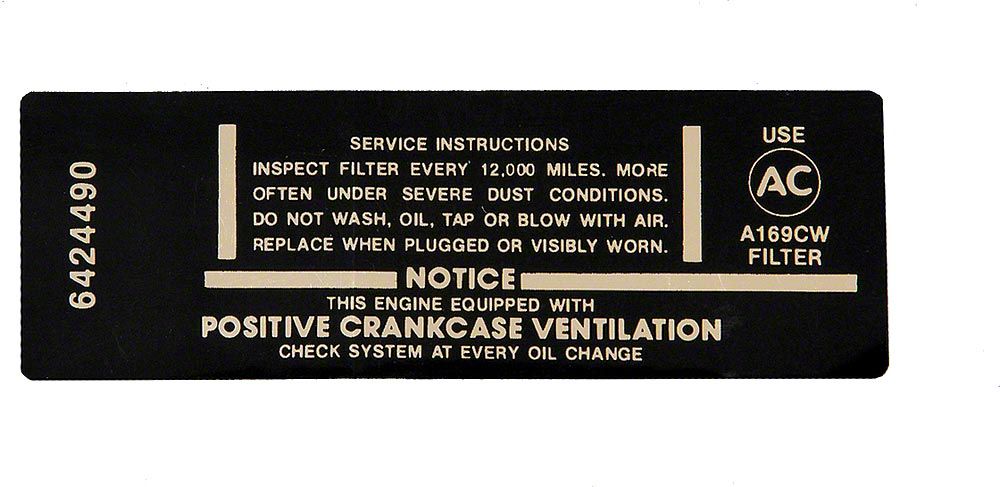 Full Size Chevy Air Cleaner Service Instructions Decal, 283ci/195hp (66-67 Biscayne; 66-67 Impala)