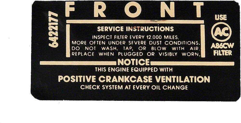 The decals on your Chevy are bound to get peoples' attention when you are at a car show. Because of this, don't you want to be sure that your air cleaner decal look shiny and new to give off that sophisticated, professional image? Over time, these decals can become scratched and worn down from wear and tear, and will inevitably need to be replaced. After all, you want to keep up that positive image for your Chevy, right? Ecklers Late Great Chevy is happy to offer this new reproduction decal for your Chevy that matches GM factory specifications. This decal will add the much-needed look back to your Chevy. Trust Ecklers Late Great Chevy for all of your restoration and replacement needs for your Chevy!