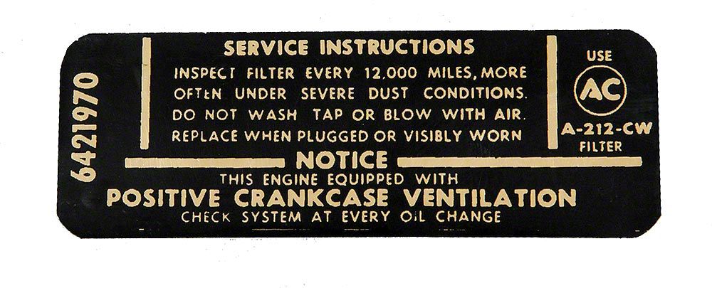 Full Size Chevy Air Cleaner Service Instructions Decal, 396ci/375hp (1965 Biscayne; 1965 Impala)