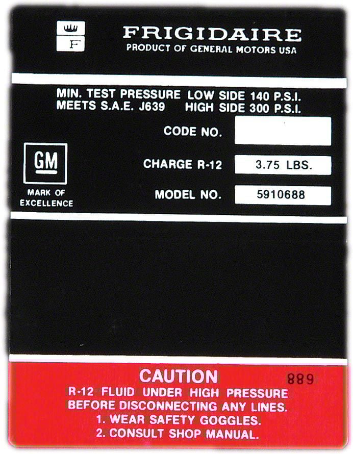 Full Size Chevy Air Conditioning Compressor Decal, Frigidaire (1969 Biscayne; 1969 Impala)