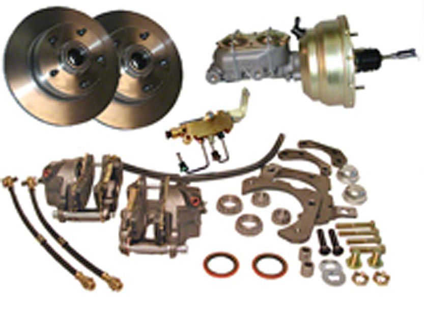 Are you ready for a huge improvement over original, unpredictable four-wheel drum brakes? If you are, then our complete power disc kit is for you. Our comprehensive kit includes: large 11" vented rotors, calipers, caliper brackets, pads, hoses, lines, 7" power booster, dual master cylinder, proportioning valve and bracket & bearings.