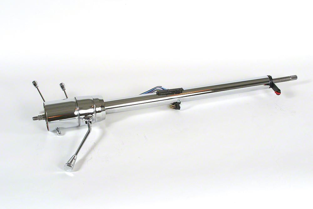 Eckler's Late Great Chevy is happy to offer this new floor shift tilt steering column for your 1965 or 1966 Chevrolet. Manufactured by ididit, this chrome tilt steering column will completely change the way you feel about driving and getting in and out of your car. Ididit is the best name in the steering column business, so you can be sure that you are getting the most quality steering product. The shaft at the bottom is 3/4"-36 spline which adapts to your stock steering shaft. The column is fully wired and adapts easily to the