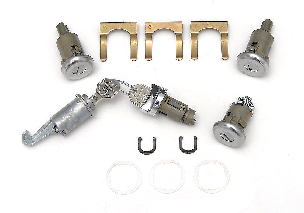 This reproduction Chevy lock set includes all locks needed for one car that are keyed to fit one set of keys! Brand new door locks, trunk lock, ignition lock (fits original or reproduction ignition switch) and glove box lock are included in this Chevy lock set. If your Late Great Chevy is missing any of the original locks, or if it takes 2-3 keys just to fit all the locks in your car, then our Chevy lock set is for you!