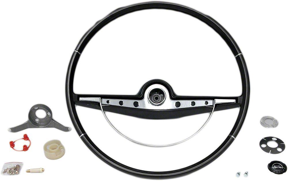 Full Size Chevy Complete Steering Wheel Assembly, Black, Impala Non-SS, 1963
