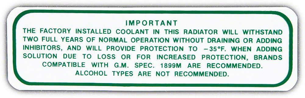 This Chevrolet reproduction cooling system decal has been manufactured to original factory specifications using today's modern manufacturing techniques. You will find the quality and appearance will work superbly for your restoration. In addition, using a reproduction cooling system decal from Eckler's will add authenticity and value to your Chevy.