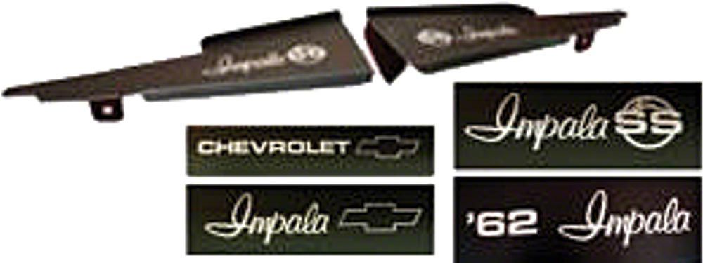 Full Size Chevy Core Support Filler Panels, Black Anodized,With Logo/Design, 1962
