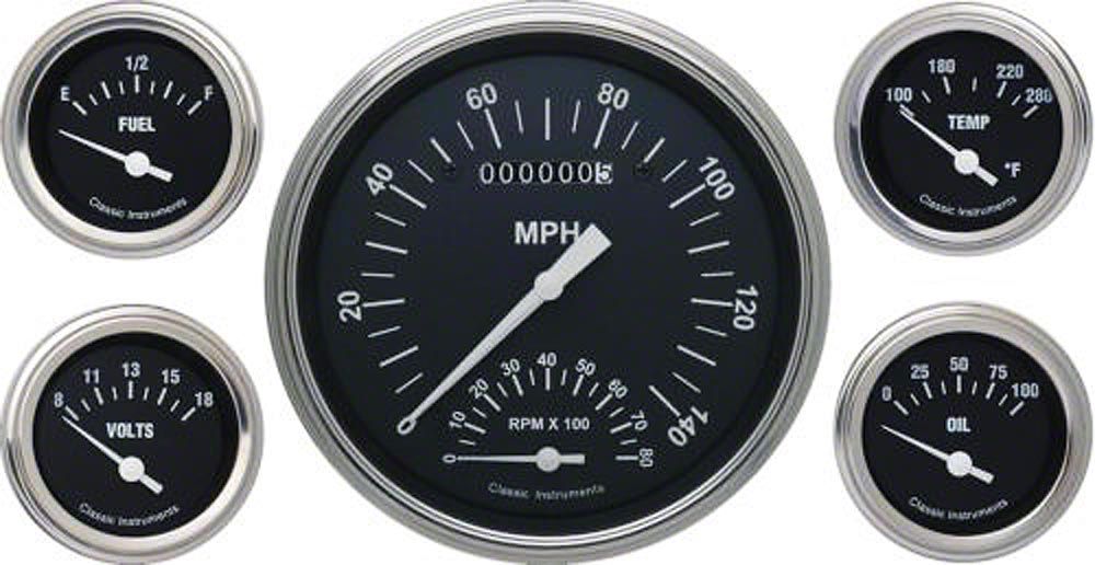 Classic Instruments Full Size Chevy Custom Gauge Set, Black Face, With White Lettering, Hot Rod, Classic Instruments, 1959-1960