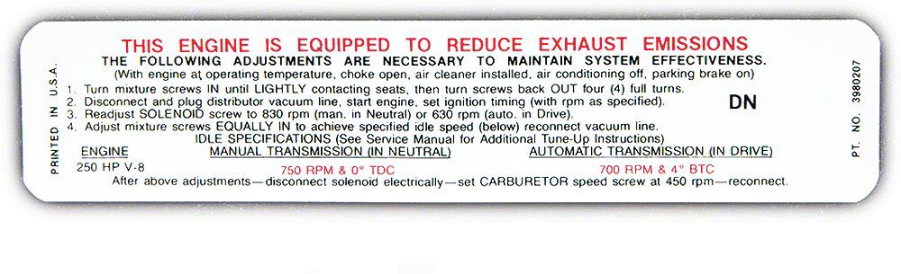 This Chevrolet reproduction emission decal has been manufactured to original factory specifications using today's modern manufacturing techniques. You will find the quality and appearance will work superbly for your restoration. In addition, using a reproduction emission decal from Eckler's will add authenticity and value to your Chevy.