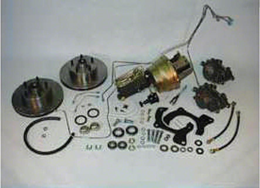 Are you ready for a huge improvement over original, unpredictable four-wheel drum brakes? If you are, then our complete power disc kit is for you. Our comprehensive kit includes: large 11" vented rotors, calipers, caliper brackets, pads, hoses, lines, 9" power booster, dual master cylinder, proportioning valve, prebent front line set and bracket & bearings.