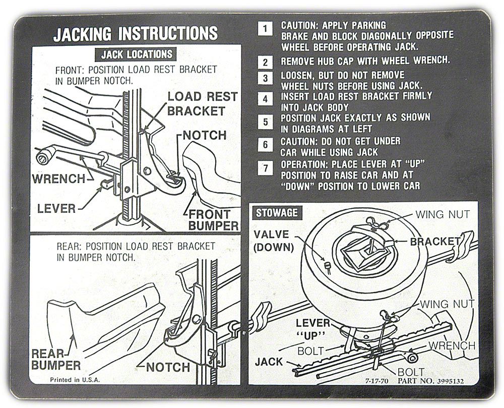 This Chevrolet reproduction jack stowage & jacking instructions sheet has been manufactured to original factory specifications using today's modern manufacturing techniques. You will find the quality and appearance will work superbly for your restoration. In addition, using a reproduction jack stowage & jacking instructions sheet from Eckler's will add authenticity and value to your Chevy.