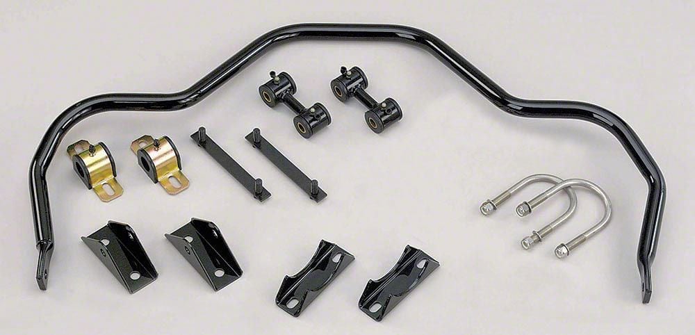 Eliminate unwanted boy roll and old car handling with our Performance Sway Bar Kit. This easy to install package dramatically improves handling, stability and control without compromising ride quality. Our 1-1/4" front sway bar and adjustable 1" rear sway bar control unwanted body roll when cornering and stabilize your car when cruising. These hollow sway bars are finished in gloss black powder coated and come complete with fabricated end links, stainless steel u-bolts, heavy-duty brackets, grade 8 hardware and easy to lubricate polyurthane bushings.