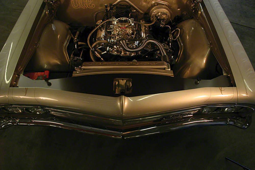 NOTE: See Additional Photos For Logo Designs. All Photo Illustrations Are 1966 Impala Black Anodized Panels.Installed above the front of the radiator, these panels direct the air flow through the radiator instead of allowing it to pass over the top. They also keep the hot air from recirculating back to the front of the radiator when idling.