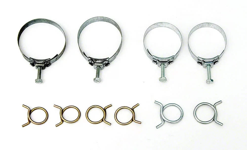 Eckler's Late Great Chevy offers this corbin "spring ring" and tower style hose clamp set for the demanding restorer who wants a Chevy Bel Air, Biscayne, Impala, Nomad or Wagon that looks factory correct without breaking the bank. Hose clamps like this were used on all 1961 and 1962 Chevy radiator and heater hoses from the factory and being lightly plated they were very susceptible to rust and corrosion. Replace yours today with the correct parts from Ecklers Late Great Chevy and keep your Full Size Chevy looking factory correct and show fresh.