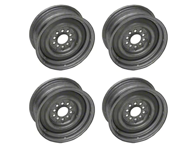 Your Impala, Bel Air, Biscayne or Caprice will always look really cool with a full wheel covers. Good for looks, not so good for braking. Original wheels will not clear aftermarket factory style disc brake conversions. 14" early Camaro wheels will. But, there is no provision to attach the full size hub cap. Ecklers Late Great Chevy brings you this replacement wheel that will actually go over the 11" rotor and caliper with a little room to spare. Trust Eckler's Late Great Chevy for all your 1958, 1959, 1960, 1961, 1962, 1963, 1964, 1965, 1966, 1967, 1968, or 1969 Chevrolet Impala, Bel Air, Biscayne, Caprice or wagon restoration parts always at the best possible price.