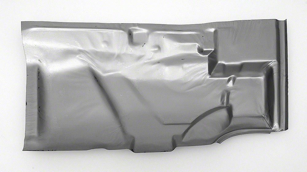 Eckler’s Late Great Chevy stamped steel sheet metal floor pan repair panels are crucial when rust rears its ugly head. 1959 or 1960 Late Great Chevy floor pans take a beating over the years and are rarely rust-free. Eckler’s Late Great Chevy sources sheet metal floor pans from the world’s premium manufacturers to bring you only the very best for your Late Great Chevy restoration. Floor pans are stamped on heavy ton equipment from correct gauge steel to ensure factory style contours and maximum rigidity over originals. The right side rear under seat floor panel lies under the rear seat of your Chevy. Floor pans from Eckler’s Late Great Chevy must be welded in and usually fitted, so never cut out