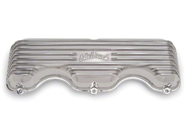 Eckler's Late Great Chevy is happy to offer high quality valve covers for your full size 1958, 1959, 1960, 1961, 1962, 1963, 1964, or 1965 Chevy. Finish off your engine with these quality Edelbrock Classic cast aluminum valve covers, which are made from heavy-gauge, sand cast aluminum with a polished, black, or EnduraShine finish, and a timeless ridged design. These valve covers have a perimeter bolt mounting style, and also include the "Edelbrock" logo. Don't wait to replace your valve covers with a higher quality alternative. Trust Eckler's Late Great Chevy for all of your restoration and replacement needs for your 1958, 1959, 1960, 1961, 1962, 1963, 1964, or 1965 Chevy!