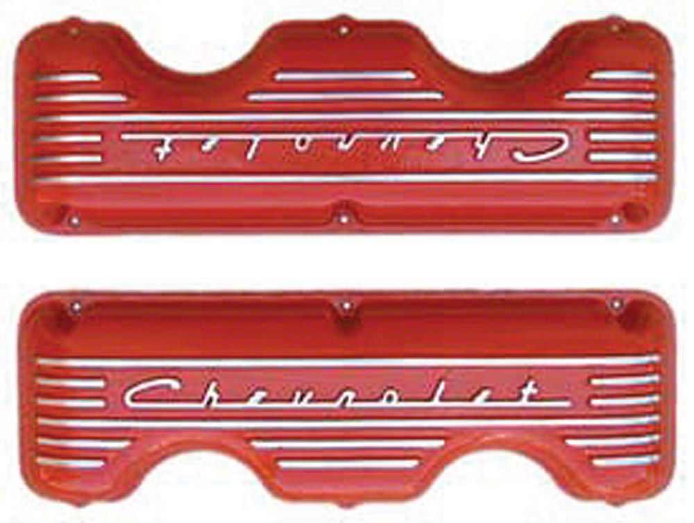 Full Size Chevy Valve Covers, 348ci & 409ci, Orange Powder Coated, 1958-1965