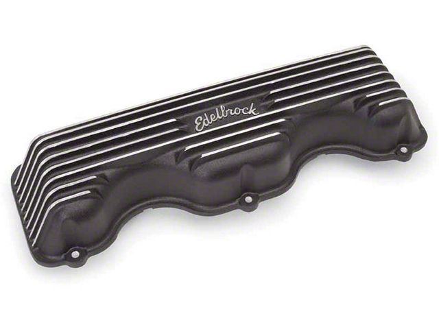 Eckler's Late Great Chevy is happy to offer high quality valve covers for your full size 1958, 1959, 1960, 1961, 1962, 1963, 1964, or 1965 Chevy. Finish off your engine with these quality Edelbrock Classic black aluminum cast valve covers, which are made from heavy-gauge, sand cast aluminum with a polished finish, and a timeless ridged design. These valve covers have a perimeter bolt mounting style, and also include the "Edelbrock" logo. Don't wait to replace your valve covers with a higher quality alternative. Trust Eckler's Late Great Chevy for all of your restoration and replacement needs for your 1958, 1959, 1960, 1961, 1962, 1963, 1964, or 1965 Chevy!