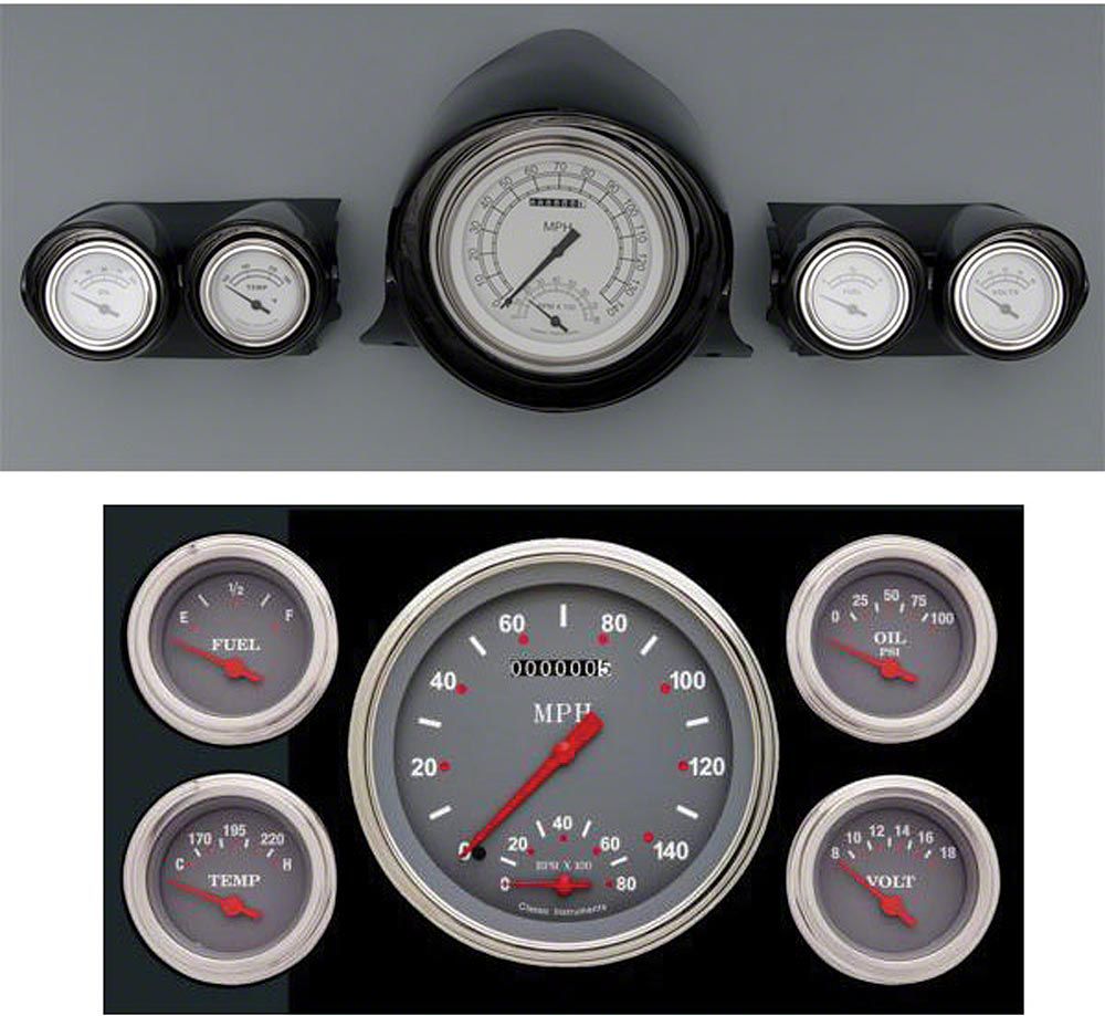 Classic Instruments Full Size Chevy Custom Gauge Set, Gray Face, With Red & White Lettering, S & G, Classic Instruments, 1959-1960