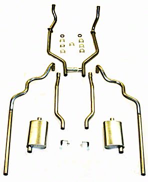 This system fits 2 and 4 door hardtop and sedan, but won't fit convertibles or station wagons. It features original style 2" pipes, but ours are aluminized with mandrel bends. No exhaust valve is required. Includes "donut" exhaust manifold gaskets and flanges. You can select tailpipes that turn down at the ends like t