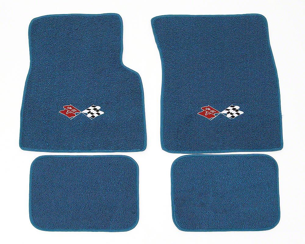 Full Size Chevy Floor Mats, Blue Carpet, With Embroidered Bowtie, Crossed-Flags, Impala/Crossed-Flags or SS Logo, 1961-1964
