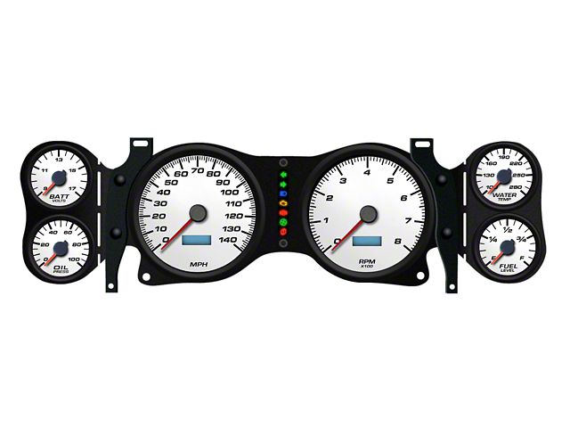 •INCLUDED IN EACH KIT:Mounting bracketCenter mount indicatorSpeedometerTachometerWater temperature gaugeOil pressure gaugeVoltmeterFuel level gauge 0-90 matchTemperature senderPressure senderSender bushings