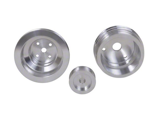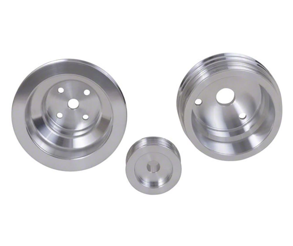 A 305/350 Truck aluminum pulley kit makes a great modification for your 1985, 1986, or 1987 Truck. This BBK pulley kit is made from quality aluminum alloy and is designed as a direct bolt-on replacement for the current pulleys, while also still retaining full cooling and charging characteristics. This hand polished aluminum pulley kit part provides an average of 8-15 added HP to your already high performing 305/350 Truck. The kit includes a waterpump pulley, alternator pulley, and a crankshaft pulley. A traditional mod is to underdrive the engine water pump. This effectively reduces the amount of HP consumed by the water pump and allows more power to accelerate your classic car. By making this addition, your car should experience much more crankshaft and wheel HP. The alte