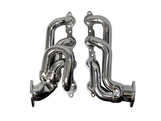 Truck shorty chrome exhaust headers are an easy way to increase the horsepower in your 1996, 1997, or 1998 GM truck. Whereas stock manifolds combine exhaust gases from each exhaust port on the cylinder head as soon as the gases leave the engine, headers provide a single exhaust tube for each port, resulting in an easier workload when your engine evacuates the gases. All BBK short unequal length 1996-1999 GM Truck & SUV exhaust headers for 5.0L & 5.7L engines are designed for direct bolt-on performance to the existing stock exhaust system. Each BBK full length long tube exhaust header system are CAD designed and are manufactured with 1-5/8" CNC mandrel bent tubing for unrestrictive airflow and a one piece laser cut flange 3/8" for added strength and durability. When
