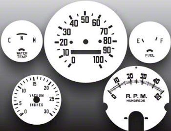 The white gauge overlays are made of a vinyl plastic with adhesive backing. They install over your stock faces and require no needle removal or recalibration.