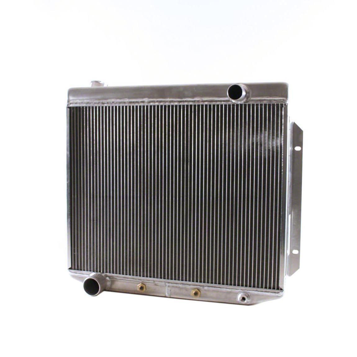 Aluminum radiator manufactured to the strictest tolerances. Not only are they heli-arc welded and vacuum brazed, but the core is reinforced with a special high temperature epoxy that provides additional tube to header strength and helps prevent vibration failure. This process is Q-1 approved by the Ford Motor Company, one of the toughest quality standards in the industry. All radiators are 2-row, and feature either 1" or 1-1/4" tube cores. Ask your sales person for details. These radiators are 100% manufactured in the U.S.A. The aluminum radiators are not the exact same dimensions as the original radiators. Because of this our fan shrouds may not fit them.
