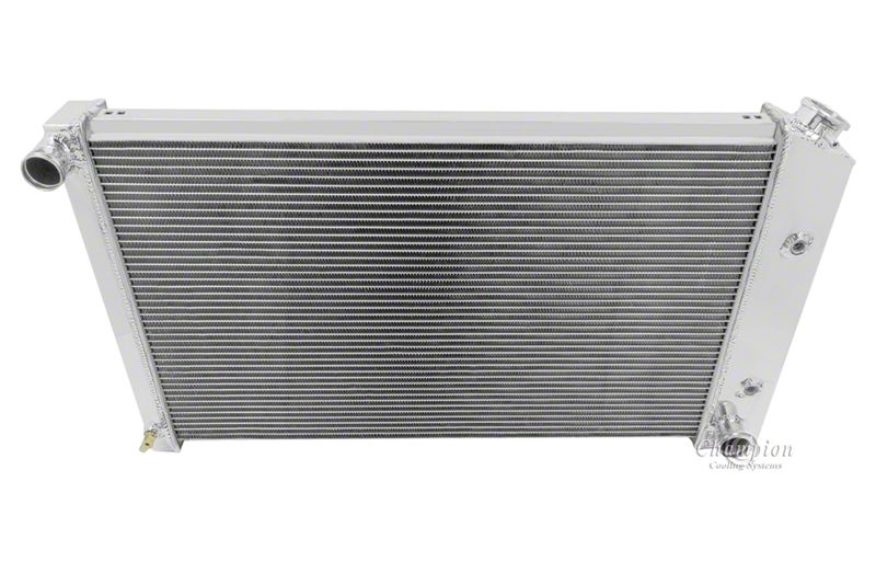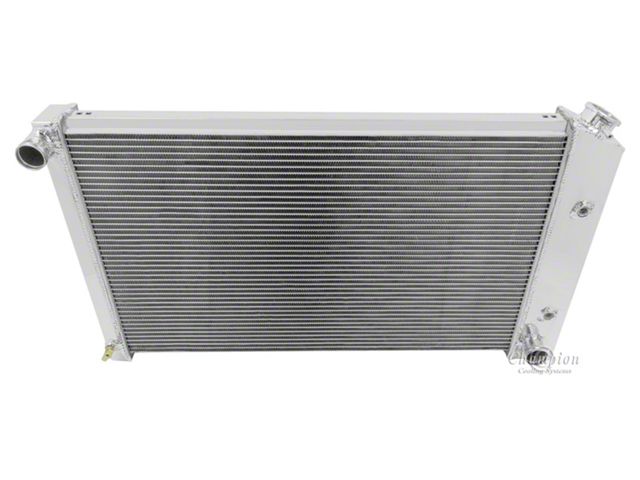 Your 1975-1981 Camaro can get hot...really hot. Bumper to bumper traffic, blistering summer days, and daily driving can add up. The factory copper and brass radiators were barely satisfactory at transferring heat which is why Chevy engine will overheat. Why take chances with your valuable Chevy engine? Champion Aluminum Radiators from Ricks Camaros provide outstanding perofrmance at an excetional value. Aluminum is a far superior to the original copper and brass because it dissipates heat and cools down much more quickly. That means better protection for your investment. Champion's aluminum radiator is 50-75% lighter than your factory copper and brass radiator unit and cools up to 40% better. Plus, the the incredible price makes this Champion radiator an exceptional value. Trust Ricks C
