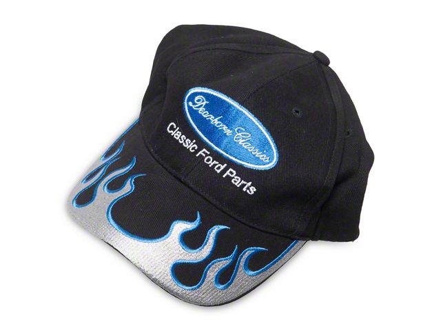Custom black hat with blue and silver flamed design and Dearborn Classics logo is one that you must have for your hat collection! These high quality caps have detailed embroidery and the attractive Dearborn Classics logo in blue. Show your true blue spirit with this one!